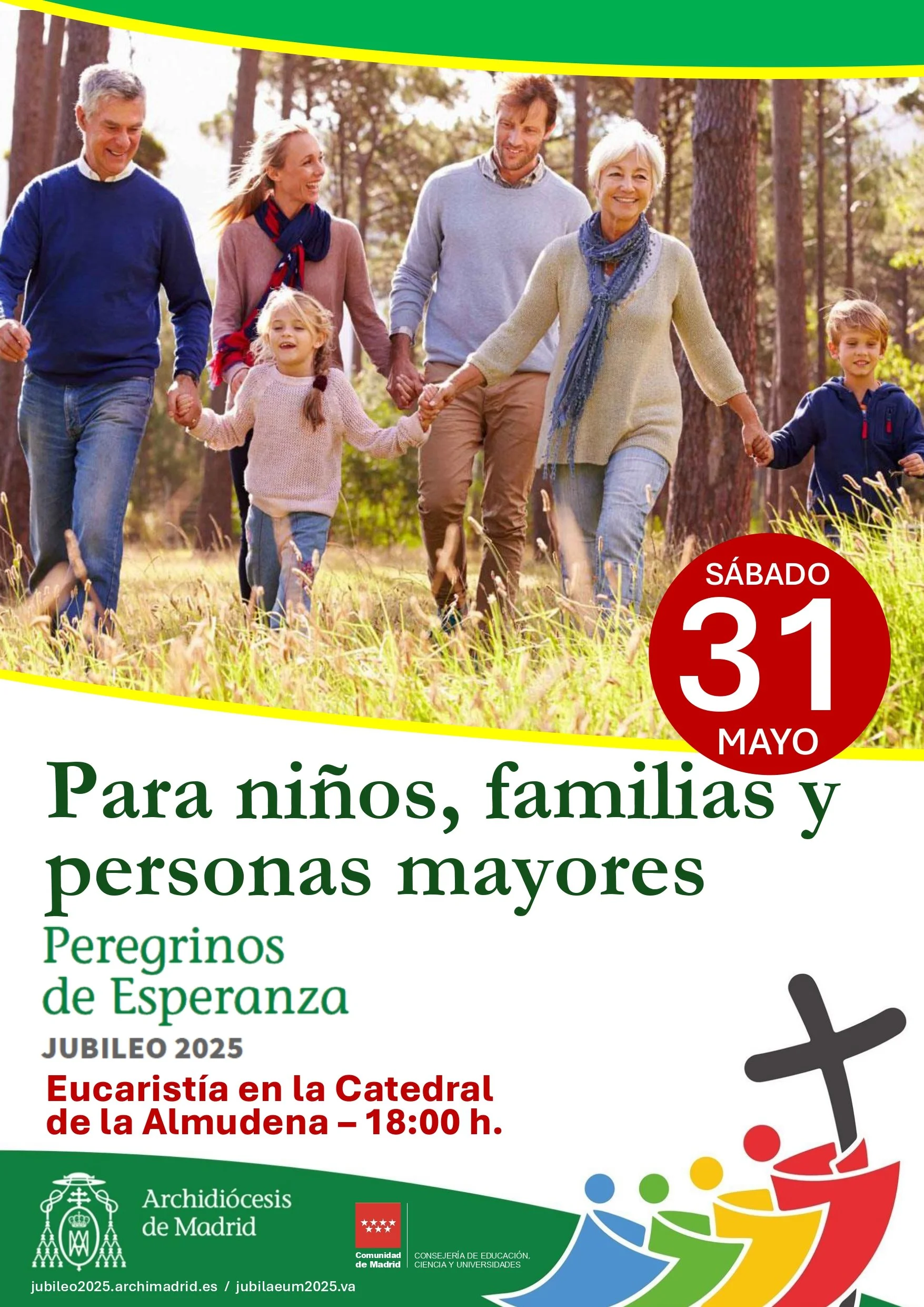 Los equipos de las Delegaciones de Familia y Vida, Delegación de Jóvenes, y la Comisión Diocesana de la Pastoral con las Personas Mayores de la Archidiócesis de Madrid informan de la celebración el próximo sábado 31 de mayo de un encuentro con ocasión del Jubileo.